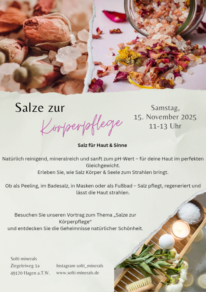 Euch erwartet unter anderem ein Vortrag zum Thema Salz und Anwendungen, Mitmachaktionen, Angebote und ein Gewinnspiel.
